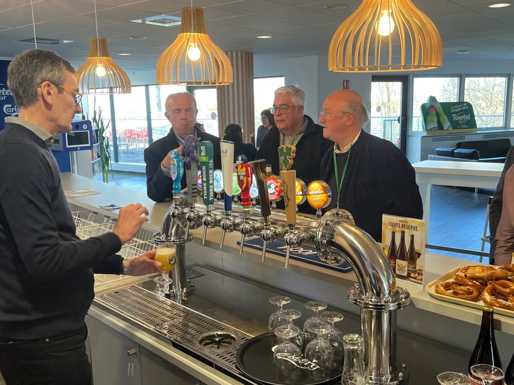 Nous avons été remarquablement accueillis par Franck CHARNAY et Shelby RITROVATO qui nous ont guidé lors de la visite très impressionnante de la brasserie, tant par le volume brassé, que par les actions entreprises sur l’amont agricole, le packaging, le transport, … pour assurer un Développement Durable de l’activité.